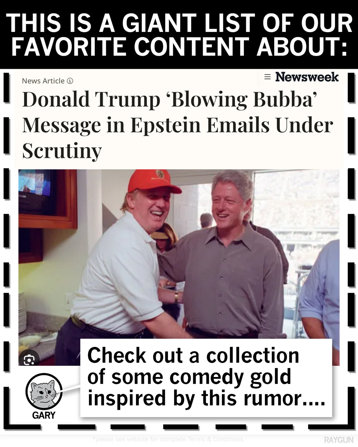 This whole Trump "Blowing Bubba" from the Epstein emails has led to some comedy gold!... Read More