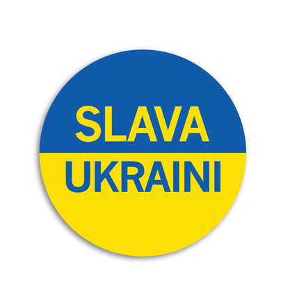 Slava Ukraini. 100% of the profits will go toward United Help Ukraine. 2.25" Round Metal Button. Designed by RAYGUN and Made by Badge Bomb LLC.