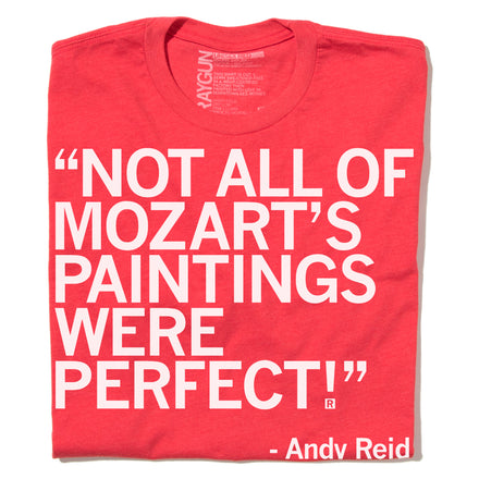 "When it's grim, be the Grim Reaper." - Andy Reid. A Portion of All RAYGUN Sales Raise Money For Organizations That We Support. White Screen Print on a Heather Red T-shirt (50% Combed Ringspun Cotton / 50% Polyester). Cut and sewn sweatshop free. Designed and printed by Union Labor at RAYGUN.