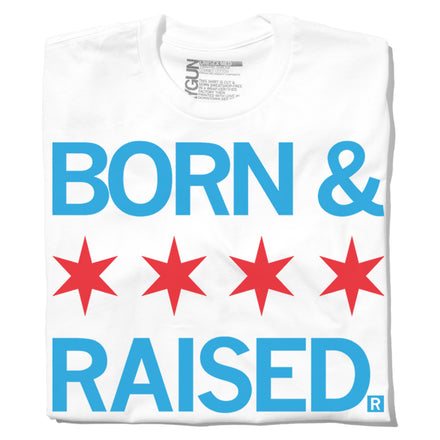 Chicago Born and Raised. Die-Cut Vinyl sticker. Designed by RAYGUN and printed by Sinclair Graphics in Des Moines, IA.