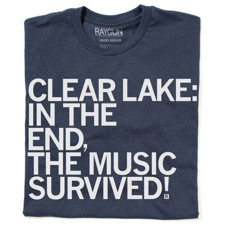 Clear Lake: The Hamptons Of Mason City. A Portion of All RAYGUN Sales Raise Money For Organizations That We Support. White Screen Print on a Heather Royal T-shirt (50% Combed Ringspun Cotton / 50% Polyester). Cut and sewn sweatshop free. Designed and printed by Union Labor at RAYGUN