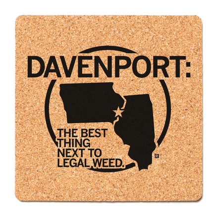 Davenport: We eat Trucks Like You for Breakfast. Black Screen Print on 1/8 inch thick natural high density cork, 4" x 4". Designed by RAYGUN and printed by Union Labor at RAYGUN.