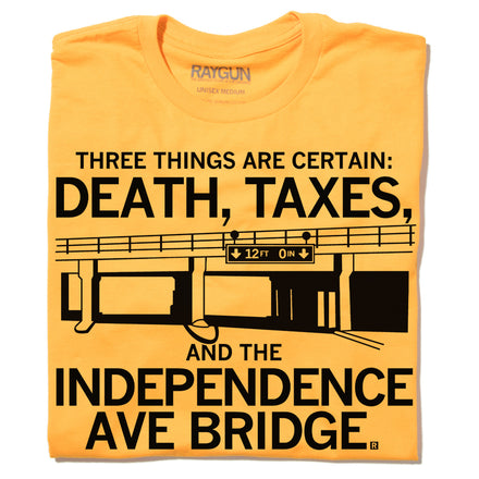 The Independence Ave Bridge: Undefeated Champion! Since 1912. This Design Has Been Retired and is No Longer Available on Our Sales Floors But Can Be Ordered Here Online! Since All of Our Retired Designs Are Printed on Demand, Please Allow For a Couple Extra Days Before Shipping. This shirt was inspired by a Twitter conversation, and proceeds will benefit the Kansas City Public Schools Foundation and Cars 4 Heroes! Black Screen Print on a Heather Grey T-Shirt (65% Polyester / 35% Combed Ringspun Cotton). Cut and sewn sweatshop free. Designed and printed by Union Labor at RAYGUN.