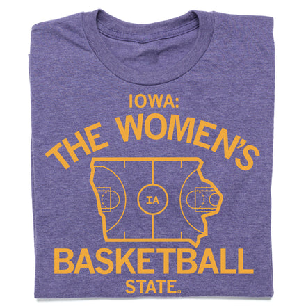 Iowa: The Women's Basketball State. A Portion of All RAYGUN Sales Raise Money For Organizations That We Support. Gold Screen Print on a Black T-shirt (100% Combed Ringspun Cotton). Cut and sewn sweatshop free. Designed and printed by Union Labor at RAYGUN.