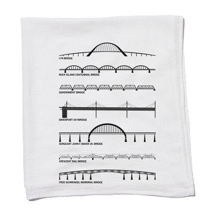 Quad Cities: Twice as Nice as The Twin Cities. Royal Blue Screen Print on a 28" x 29" flour sack kitchen towel. Designed and printed by Union Labor at RAYGUN.