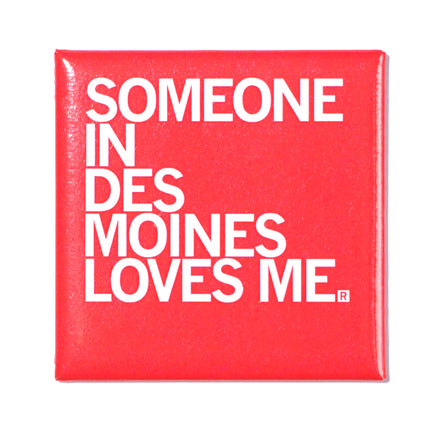 Someone In Des Moines Loves Me. A Portion of All RAYGUN Sales Raise Money For Organizations That We Support. White Screen Print on Heather Red T-shirt. (60% Combed Ringspun Cotton / 40% Polyester). Cut and sewn sweatshop free. Designed and printed by Union Labor at RAYGUN.