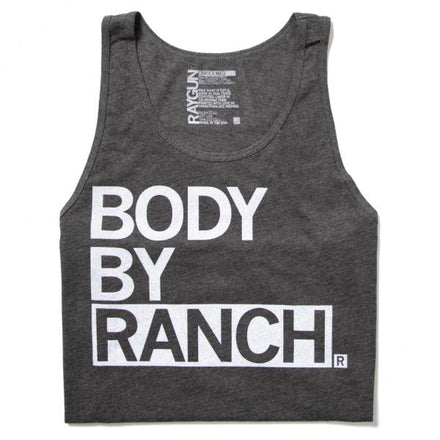Body By Busch Light. Black plastisol ink print on grey fade-resistant polyester covered scuba foam. Designed by RAYGUN. Imported and printed in the USA.