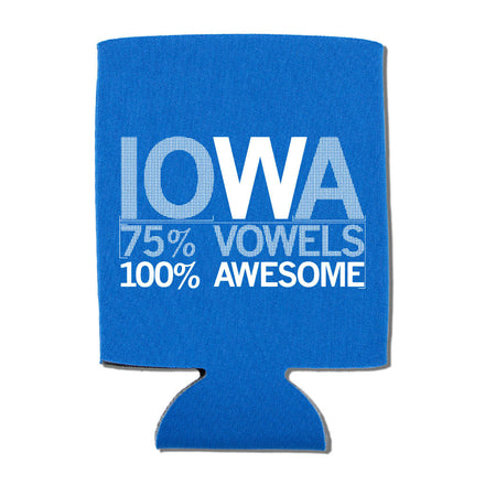 Peace. Love. Iowa. White plastisol ink print on evergreen fade-resistant polyester covered scuba foam. Designed by RAYGUN. Imported and printed in the USA.