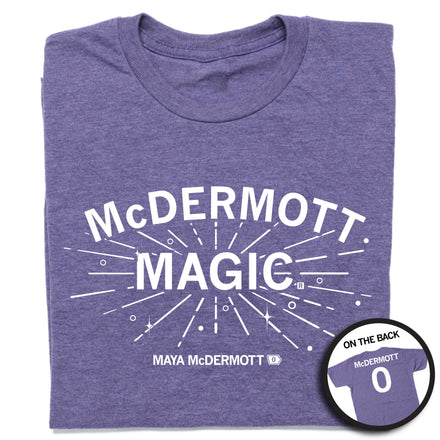 Splash Sisters. Officially licensed with Maya McDermott & Kayba Laube. Deep Purple Screen Print on a White T-shirt (100% Combed Ringspun Cotton). Cut & sewn sweatshop free. Designed and Printed by Union Labor at RAYGUN.