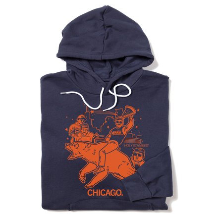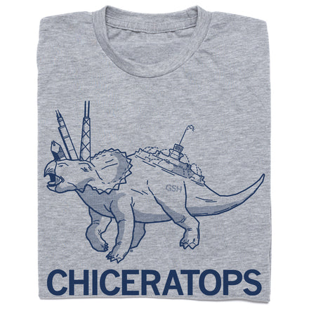 Chicago Star Progress Pride Flag. A Portion of All RAYGUN Sales Raise Money For Organizations That We Support. Heat Transfer on a Light Grey T-shirt (90% Combed Ringspun Cotton / 10% Polyester). Cut and sewn sweatshop free. Designed and printed by Union Labor at RAYGUN.