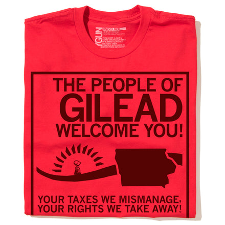 Under His Iowa: Nolite Te Bastardes Carborundorum. This Design Has Been Retired and is No Longer Available on Our Sales Floors But Can Be Ordered Here Online! Since All of Our Retired Designs Are Printed on Demand, Please Allow For a Couple Extra Days Before Shipping. Some proceeds go to the Iowa Abortion Access Fund and to Planned Parenthood North Central States. White Screen Print on a Red T-shirt (100% Combed Ringspun Cotton). Cut and sewn sweatshop free. Designed and printed by Union Labor at RAYGUN.
