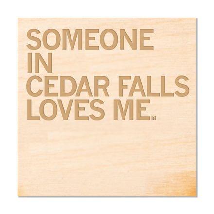 Someone In Waterloo Loves Me. Laser Etch on 1/8 inch Baltic Birch wood. 4x4" clear sealed and back stained black. Designed by RAYGUN and printed by Union Labor at RAYGUN.