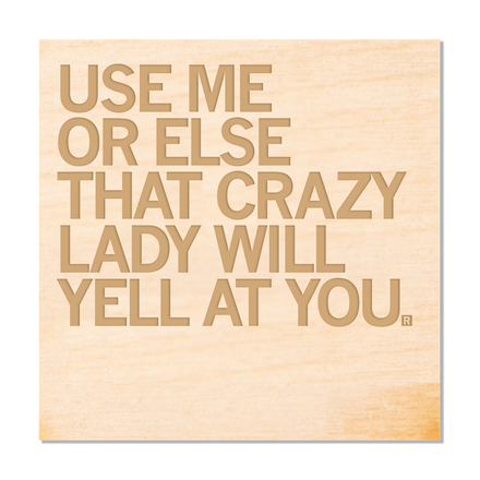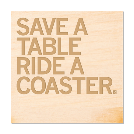 Friends Don't Let Friends Leave Water Rings. Black Screen Print. Laser Etch on 1/8 inch Baltic Birch wood. 4x4" clear sealed and back stained black. Designed by RAYGUN and printed by Union Labor at RAYGUN.