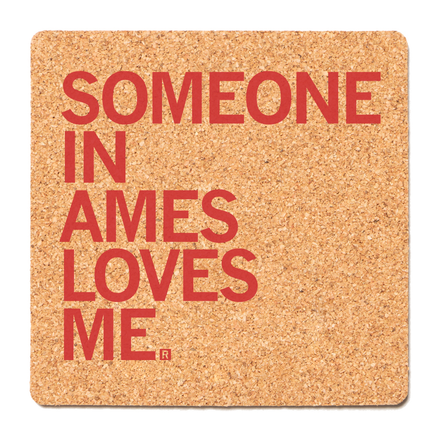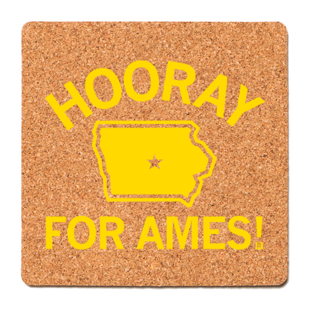 Ames Water: I'd Tap That. Purple Screen Print on 1/8 inch thick natural high density cork, 4" x 4". Designed by RAYGUN and printed by Union Labor at RAYGUN.