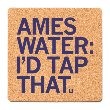 Someone In Ames Loves Me. Brite Red Screen Print on 1/8 inch thick natural high density cork, 4" x 4". Designed by RAYGUN and printed by Union Labor at RAYGUN.