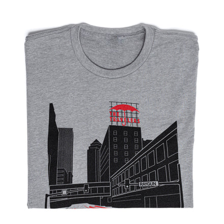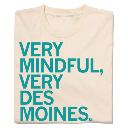 Des Moines: French for "The Moines" and Iowa State Capital Since 1857. A Portion of All RAYGUN Sales Raise Money For Organizations That We Support. Brite Red & Light Navy Screen Screen Print on a Garment-Dyed Heavyweight Ivory T-shirt (100% Combed Ringspun Cotton Heavyweight). Cut & sewn sweatshop free. Designed and Printed by Union Labor at RAYGUN.
