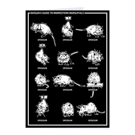 RAYGUN's Guide To: Midwestern Marsupials. Opposums. A Portion of All RAYGUN Sales Raise Money For Organizations That We Support. Die-Cut Vinyl sticker. Designed by RAYGUN and printed by Sinclair Graphics in Des Moines, IA.