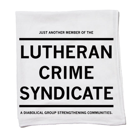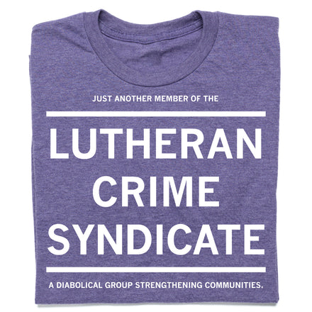 The Vast Lutheran Conspiracy to Help Those Around Us and Improve Our Communities. A Portion of All RAYGUN Sales Raise Money For Organizations That We Support. Navy Screen Print on a Light Grey T-shirt (90% Combed Ringspun Cotton / 10% Polyester). Cut & sewn sweatshop free. Designed and Printed by Union Labor at RAYGUN.