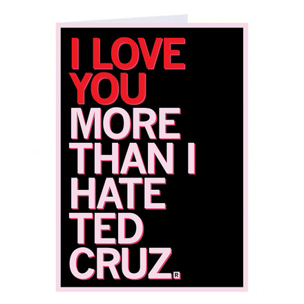 I Love You More Than I Hate Josh Hawley. A Portion of All RAYGUN Sales Raise Money For Organizations That We Support. 5" x 7" Folded Greeting Card. Inside of the card is blank and envelope included. Designed by RAYGUN and printed by union labor at Garner Printing in Des Moines, IA.