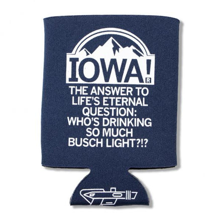 Iowa: The Answer To Life's Eternal Question: Who's Drinking So Much Light Beer? Navy soy-based ink print on 16 oz. pint glass. Lead free, fade resistant and dishwasher safe. Designed by RAYGUN and Printed by PyroGraphics in Des Moines, IA.