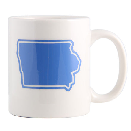 Iowa Outline. Blue soy-based ink print on 16 oz. pint glass. Lead free, fade resistant and dishwasher safe. Designed by RAYGUN and Printed by PyroGraphics in Des Moines, IA.
