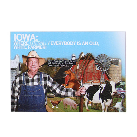 Iowa: Wandering Lost In A Cornfield Is Just The Tip Of The Iceberg! 2" x 2" Metal Magnet. Designed by RAYGUN and made by union labor at Garner Printing in Des Moines, IA.