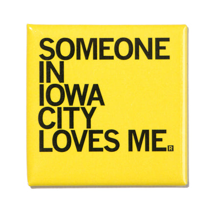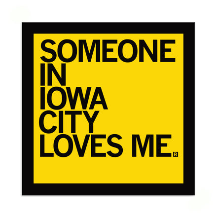 Someone In Iowa City Loves You. Gold screen print on 1/8 inch thick natural high density cork, 4" x 4". Designed by RAYGUN and printed by Union Labor at RAYGUN.