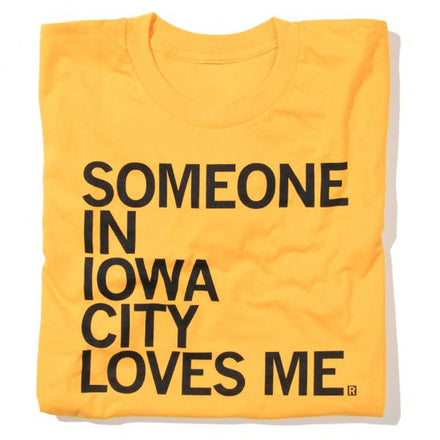 Someone In Iowa City Loves Me. 4" x 4" Vinyl sticker. Designed by RAYGUN and printed by Sinclair Graphics in Des Moines, IA.