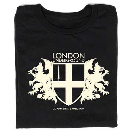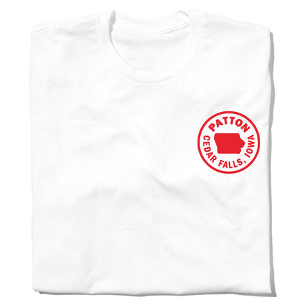 George's Local Cedar Falls, Iowa. A Portion of All RAYGUN Sales Raise Money For Organizations That We Support. Navy Screen Print on a White T-shirt (100% Combed Ringspun Cotton). Cut & sewn sweatshop free. Designed and Printed by Union Labor at RAYGUN.