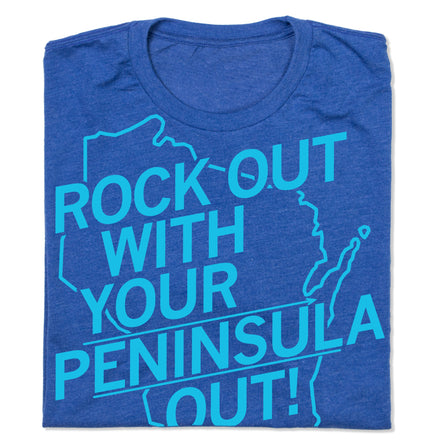 Wisconsin Bubbler. This Design Has Been Retired and is No Longer Available on Our Sales Floors But Can Be Ordered Here Online! Since All of Our Retired Designs Are Printed on Demand, Please Allow For a Couple Extra Days Before Shipping. A Portion of All RAYGUN Sales Raise Money For Organizations That We Support. Powder Blue Screen Print on a Cool Blue T-shirt (100% Combed Ringspun Cotton). Cut and sewn sweatshop free. Designed and printed by Union Labor at RAYGUN.