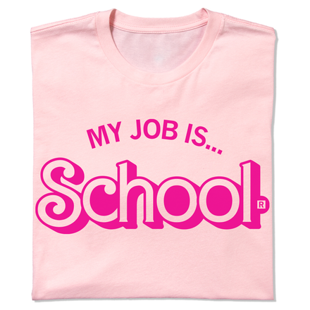My Job is Nurse. A Portion of All RAYGUN Sales Raise Money For Organizations That We Support. Rhodamine Pink Screen Print on a Light Pink T-shirt (100% Combed Ringspun Cotton). Cut and sewn sweatshop free. Designed and printed by Union Labor at RAYGUN.