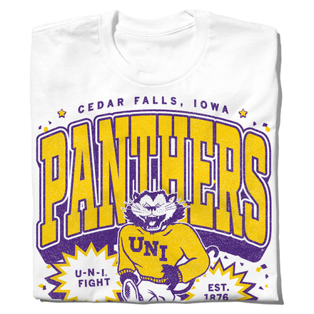 Hot Dogs. Drake University Est. 1881. A Portion of All RAYGUN Sales Raise Money For Organizations That We Support. Royal Blue Screen Print on a White T-shirt (100% Combed Ringspun Cotton). Cut & sewn sweatshop free. Designed and Printed by Union Labor at RAYGUN.