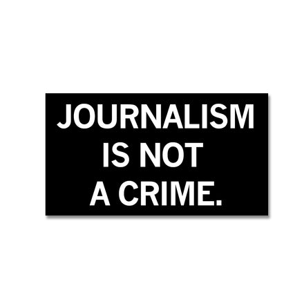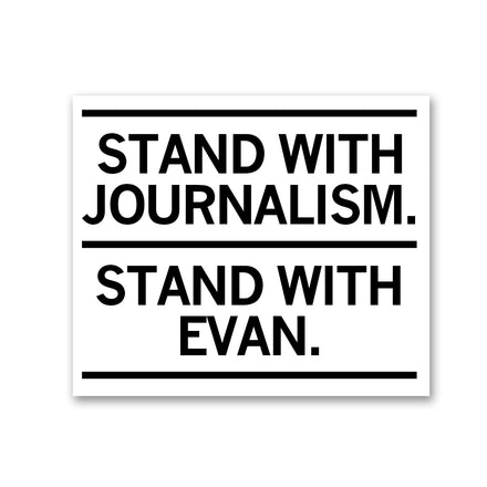 I Stand with Evan. These sticker were made at the request of Evan Gershkovich's friends. They want to keep Evan's situation in the limelight and want a portion of sales to go to RAYGUN's ongoing support of journalism. Vinyl sticker. Designed by RAYGUN and printed by Sinclair Graphics in Des Moines, IA.