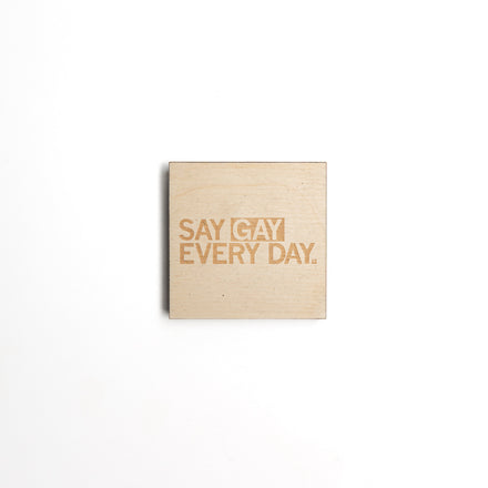 Say Gay Every Day. 12" x 12" Chloroplast Yard Sign with 10" x 14" Metal Stake. Designed by RAYGUN and made in Des Moines, IA.