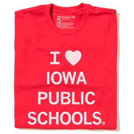 Foundation in Public Education: Protect Iowa's Foundation. A Portion of All RAYGUN Sales Raise Money For Organizations That We Support. White Screen Print on a Heather Royal T-shirt (50% Combed Ringspun Cotton / 50% Polyester) Cut & sewn sweatshop free. Designed and Printed by Union Labor at RAYGUN
