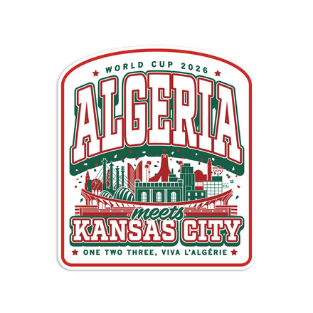 World Cup 2026: Algeria meets Kansas City. One two three, viva L'Algerie. A Portion of All RAYGUN Sales Raise Money For Organizations That We Support. Die-Cut Vinyl sticker. Designed by RAYGUN.