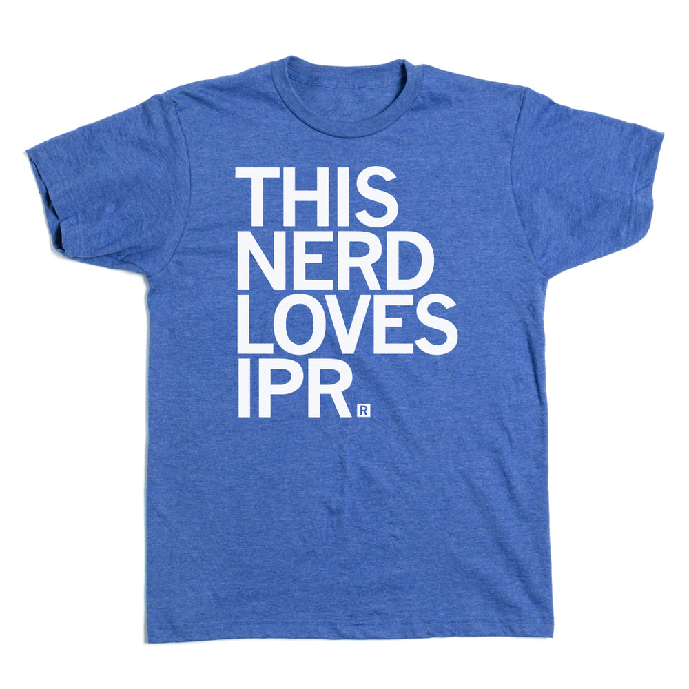 This Nerd Loves IPR. Officially licensed Iowa Public Radio merchandise with a percentage of sales going to IPR. White Screen Print on a Heather Royal T-shirt (50% Combed Ringspun Cotton / 50% Polyester). Cut & sewn sweatshop free. Designed and Printed by Union Labor at RAYGUN.