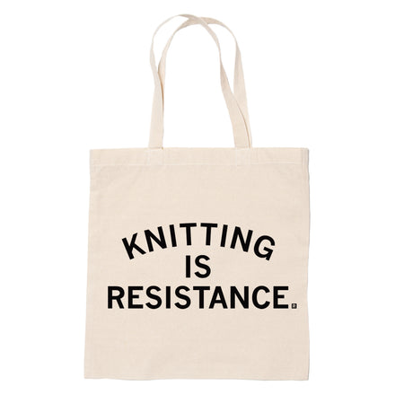 Knitting is resistance. A Portion of All RAYGUN Sales Raise Money For Organizations That We Support. White Screen Print on a Black T-shirt (100% Combed Ringspun Cotton). Cut & sewn sweatshop free. Designed and Printed by Union Labor at RAYGUN.