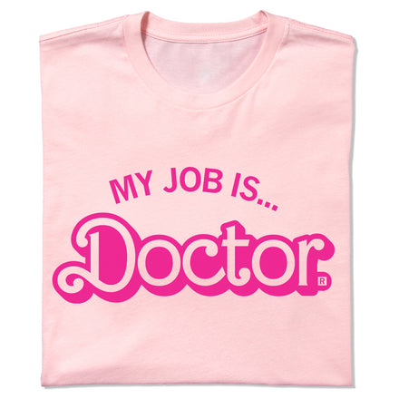 My Job is... Art. A Portion of All RAYGUN Sales Raise Money For Organizations That We Support. Rhodamine Pink Screen Print on a Light Pink T-shirt (100% Combed Ringspun Cotton). Cut and sewn sweatshop free. Designed and printed by Union Labor at RAYGUN.
